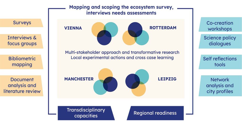 CATALYSE brings together four pilot cities: Leipzig and Rotterdam (EU Cities Mission cities) as well as Manchester and Vienna, enabling exchange across different urban contexts. The project main goal is to help the EU Mission for 100 Climate-Neutral and Smart Cities (EU Cities Mission) reach its full potential by aligning it more closely with the needs of cities. In doing so, CATALYSE will connect ongoing experimentation with long-term change, and strengthen the role of Knowledge Institutions in this transformation.