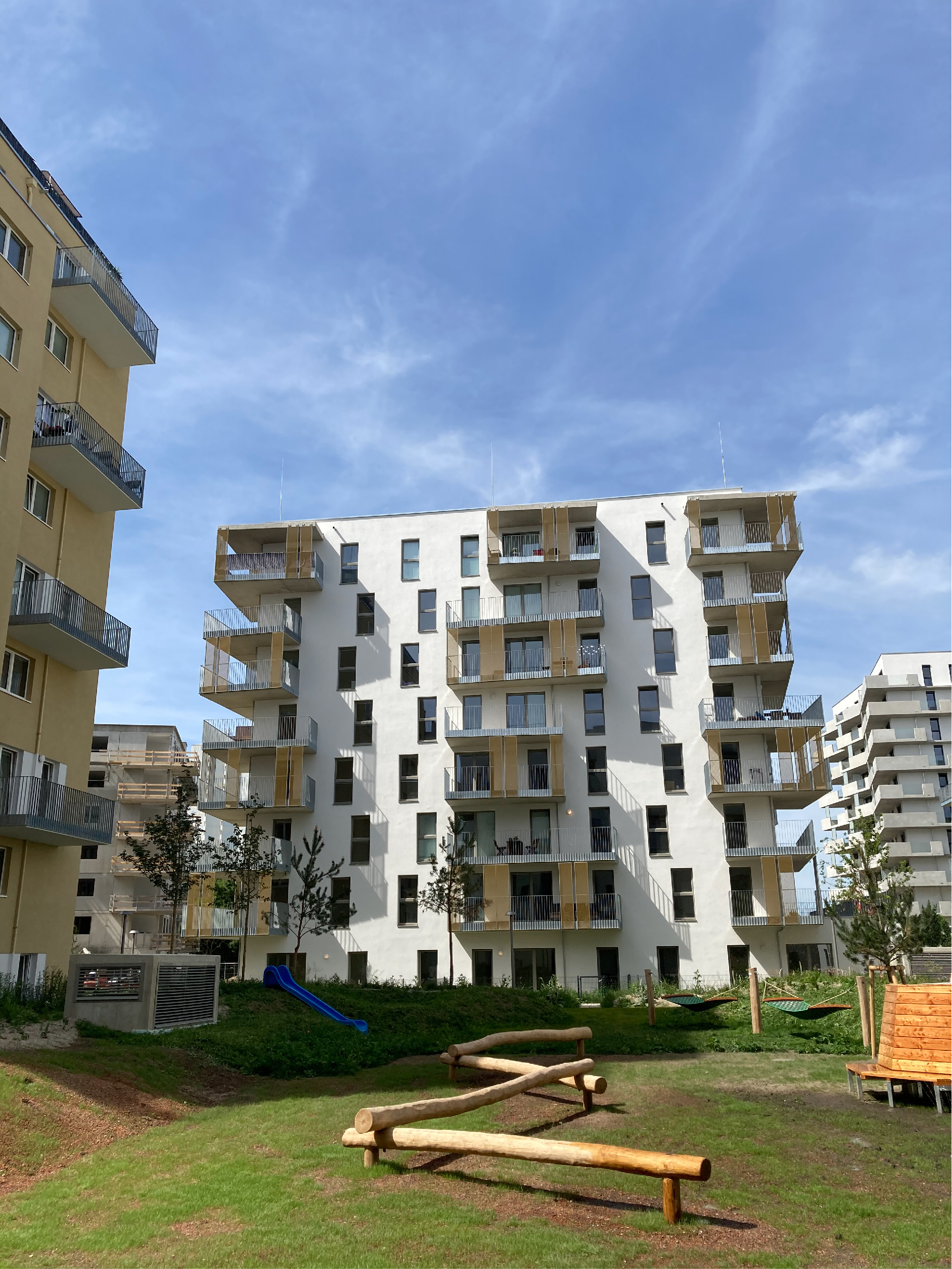 Um hohe Wohnqualitäten zu schaffen, sind alle Wohnungen mit Aus- und Durchblicken und bestmöglicher Belichtung ausgestattet. Differenziertes Wohnungsangebot wird durch flexible Grundrisse geschaffen, die eine Adaption von Zimmeranzahl und Wohnungsgrößen zulassen. Der Wohnraum wird durch Balkone und Terrassen erweitert und mit dem großzügigen Grünraum verbunden.