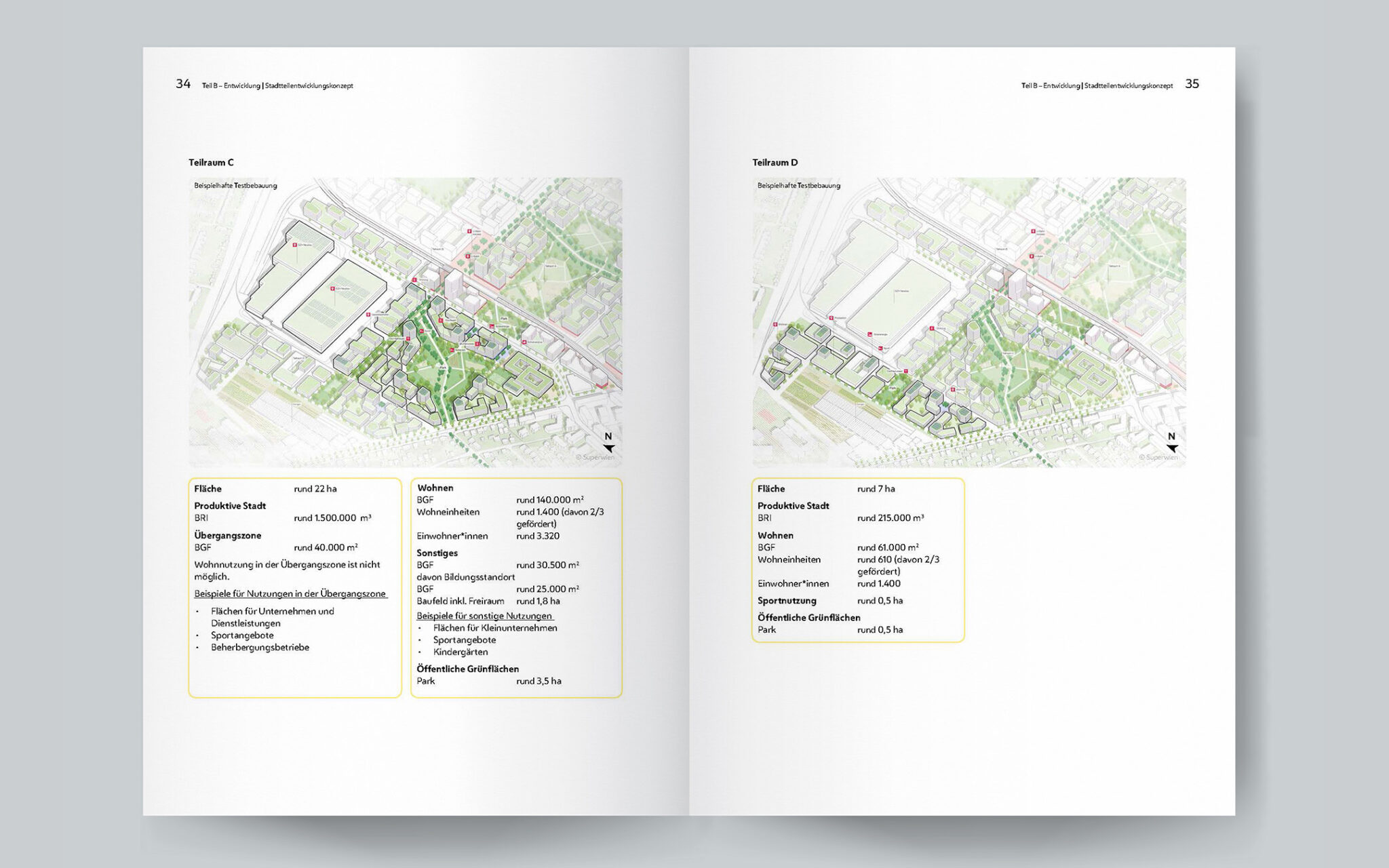 In Hausfeld, the manufacturing sector holds a central position, emphasizing the development of a sustainable business location and the harmonious integration of various uses. Local hubs and prominent landmarks act as guideposts for central pathways within the community, fostering high activity, vibrancy, and urban character. High-quality green spaces, connected to Hausfeld through the Viennese green space network, are intended to be easily accessible and usable, while new public areas are being created to address increasing demands. Sustainable resource management, adapting to high temperatures, and innovative rainwater handling are fundamental principles for creating a climate-resilient neighborhood.