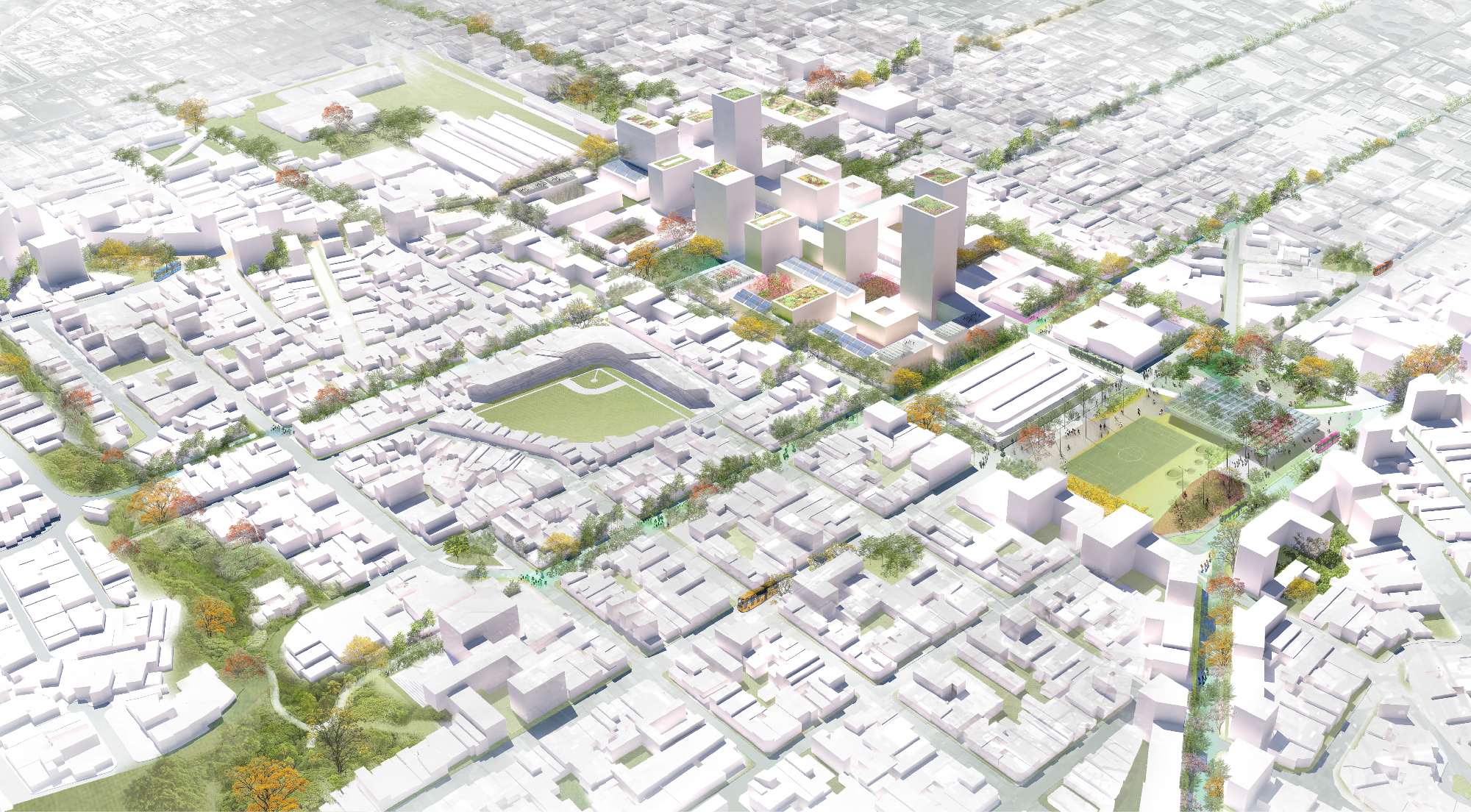 Das Projekt zielt darauf ab, eine neue Zentralität südlich des historischen Zentrums zu etablieren, indem Fußgängerfreundlichkeit und gemischt genutzte Entwicklungen verbessert und öffentliche Räume verbunden werden. Konkrete Ziele sind die Belebung von Wohngebieten durch gemischte Nutzung, die Entwicklung von Grünflächen mit kulturellen Einrichtungen und die Integration von Vierteln in das öffentliche Verkehrssystem.